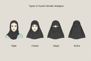 In Islam, women and men are required to dress modestly. Islam enjoins specifically on women to cover their head with a piece of clothing called veil or Hijab in the presence of men outside of the immediate family, also known as Mahram.